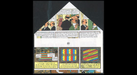 The Belgian Post wanted the centenary of Hergé's birth not to go unnoticed. As a tribute to this great artist, it has decided to issue a superb sheet of 25 special stamps, illustrated with 24 covers of the Tintin albums, each presented in a different language with, in the centre, a portrait of the author. "Presale" May 19, 2007, "First Day of Issue" May 22, 2007.