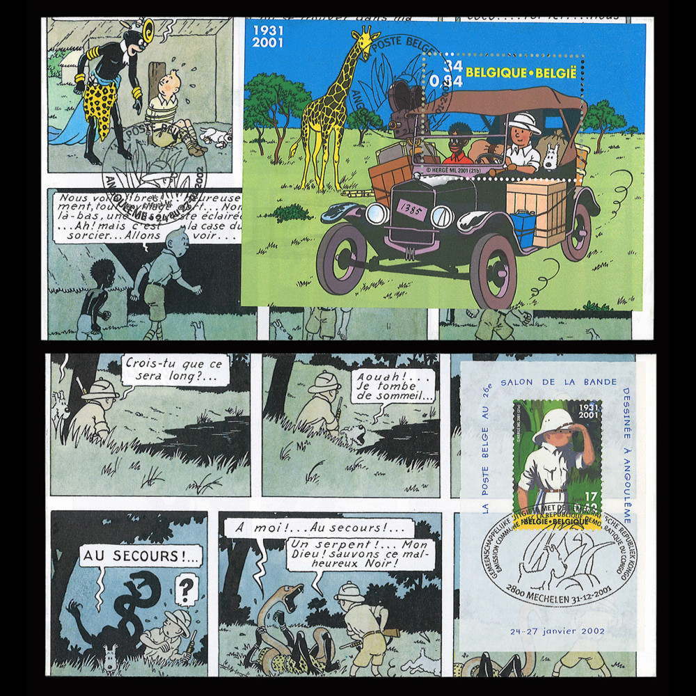 - (p. 25/26) Postage Belgium BLOCK 34F/0.84€ “Tintin in the Congo 1931-2001”