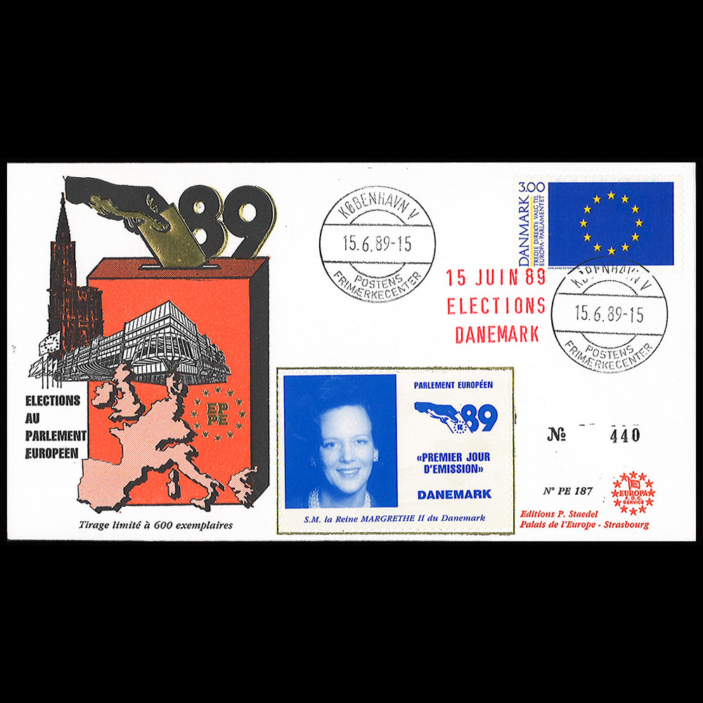 No. PE187: FDC DENMARK "1989 European Parliament Elections - HM Queen MARGRETHE II of Denmark"
