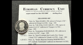 No. 010ECU-87: 0.10 ECU 1987 (reverse) "Seàn O Loinsigh, Eire/Eoraip 1 Eanair 1973 / Jack Lynch, Prime Minister of Ireland - January 1, 1973, Ireland's accession to the EEC - (obverse) 12 Stars of Europe - 1987"