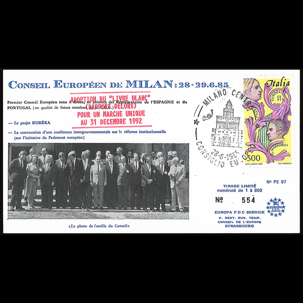 - Illustrated postmark Milan “Consiglio Europeo“ 06.28.1985