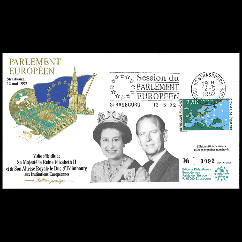 May 12, 1992 - Queen Elizabeth II of England has, for the first time in forty years of reign, visited the Council of Europe and the European Parliament in Strasbourg. As soon as he appeared before the European parliamentarians, all dressed in blue, the message was clear: it was about honoring Europe. Referring to Winston Churchill and Jean Monnet - in French in the text - the Sovereign, in an almost full hemicycle, welcomed the efforts "unique in the history of the world" made since the war to bring together "the family European”.