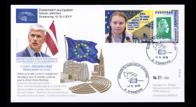- FRANCE : TVP "Marianne Green Letter" fixed on label stamp holder “European Parliament - Formal sitting - Address by Volodymyr ZELENSKYY, Ukrainian President - Brussels, 9 Feb. 2023" Postmarked Strasbourg (France) "Session of the European Parliament" 9 Feb. 2023 + Brussels (Belgium) "Extraordinary Session of the European Parliament" 9 Feb. 2023