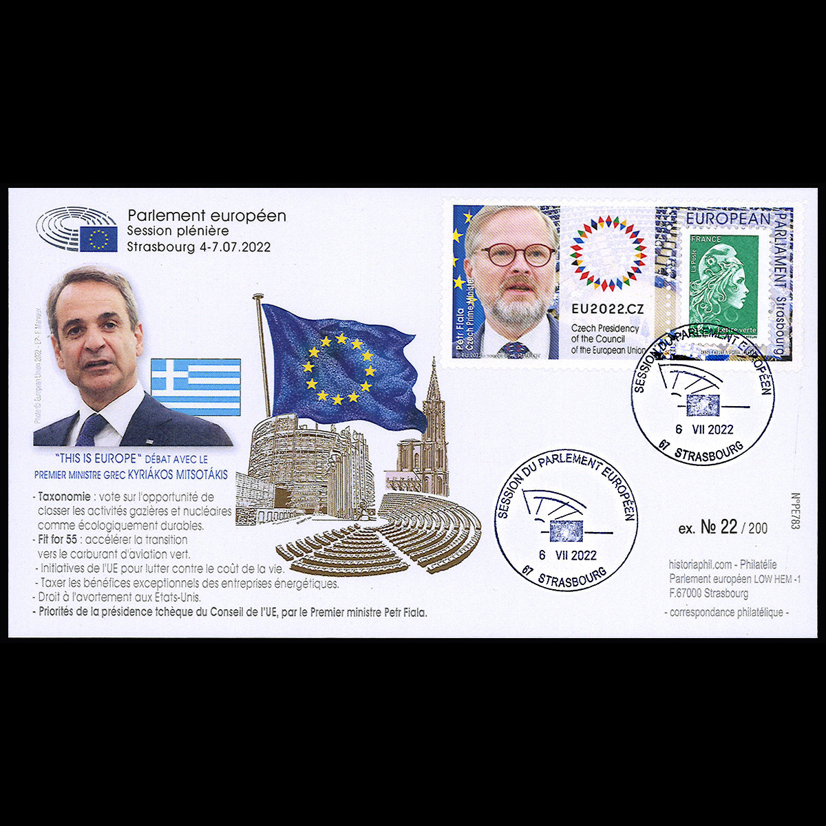 - Postage FRANCE TVP "Marianne Green Letter" fixed on label stamp holder “European Parliament 2022 / Czech EU Presidency / Prime Minister Petr Fiala"