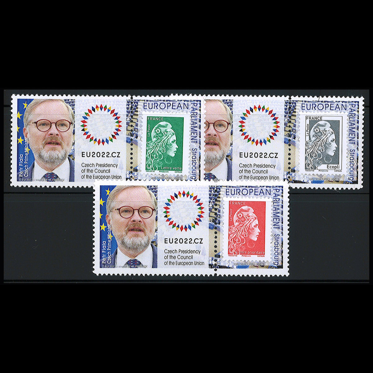 PE783PT: Set of 3 Perforated Label Stamp Holders "Session of the European Parliament, Strasbourg (France) July 2022 - CZECH EU 2022 PRESIDENCY  - PRIME MINISTER PETR FIALA"