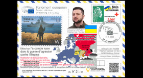 A philatelic envelope, designed by Historiaphil© (Philately Kiosk of the European Parliament, Strasbourg, France) marks the major topical themes of the plenary session of the European Parliament, from 3 to 6 October 2022 in Strasbourg. It was produced as a continuation of the collection of philatelic envelopes bearing witness since 1949 to the history of Europe and its institutions. Its edition is limited to 400 numbered copies.