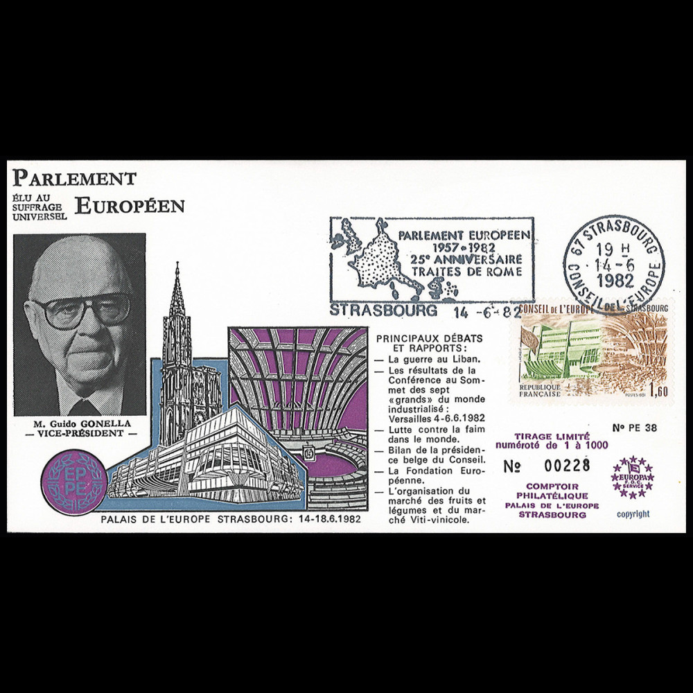- Slogan cancellation Strasbourg "European Parliament - 25th anniversary of the TREATIES OF ROME 1957-1982" 14.06.1982