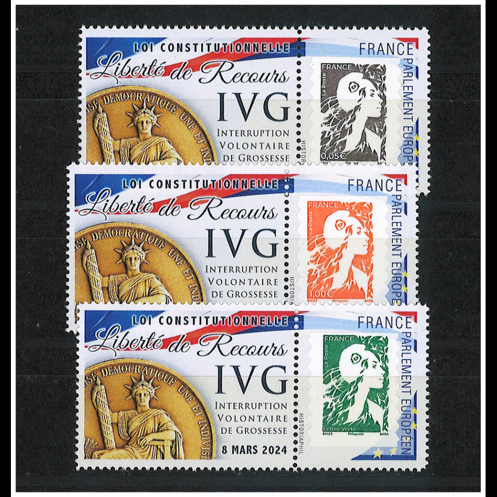 Postage France "Marianne de l'Avenir" Green Letter 20g - €1.00 orange - €0.05 brown (adhesive)