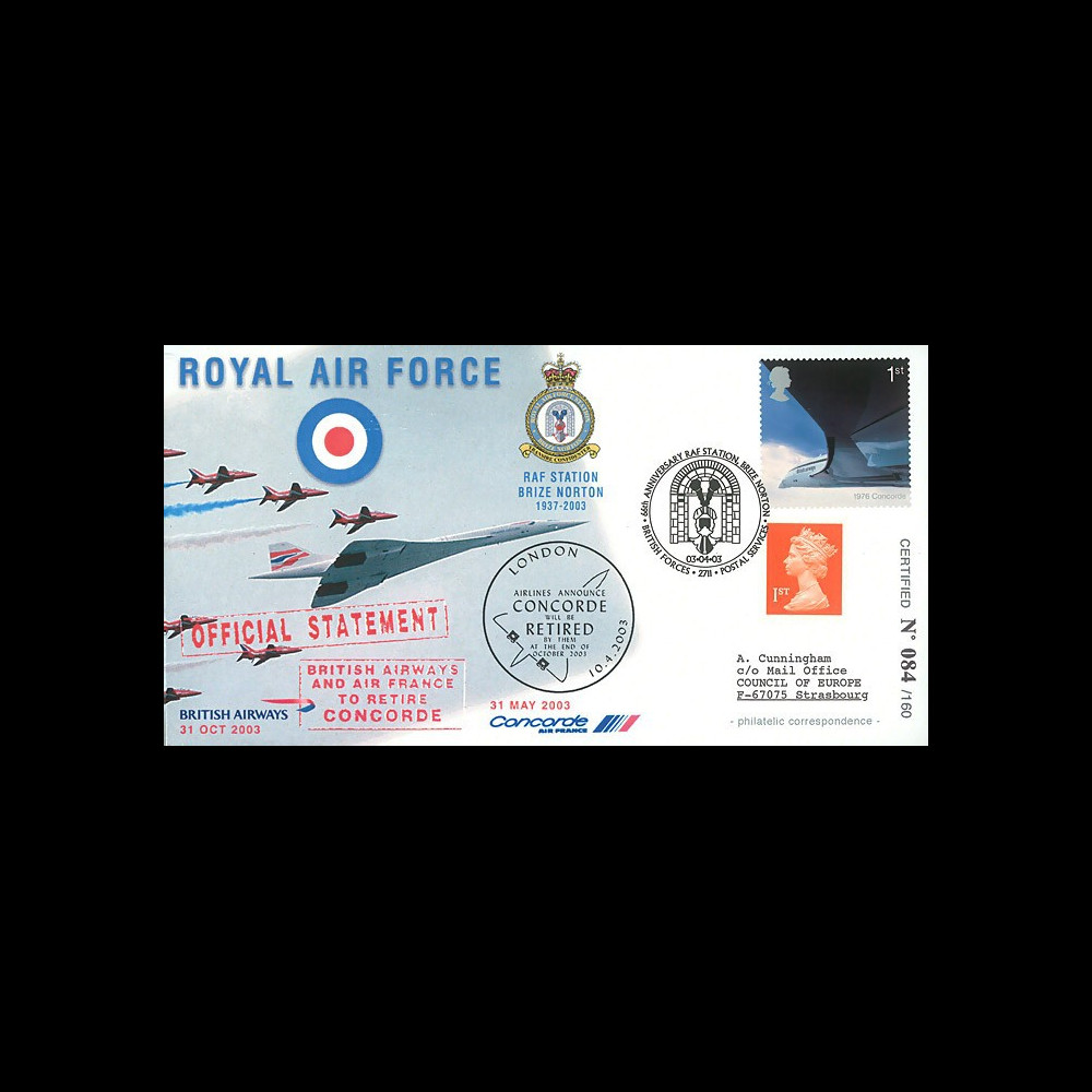 N°CO 03-RAF1 : FDC "Royal Air Force - Official statement : Air France and British Airways retire Concorde"