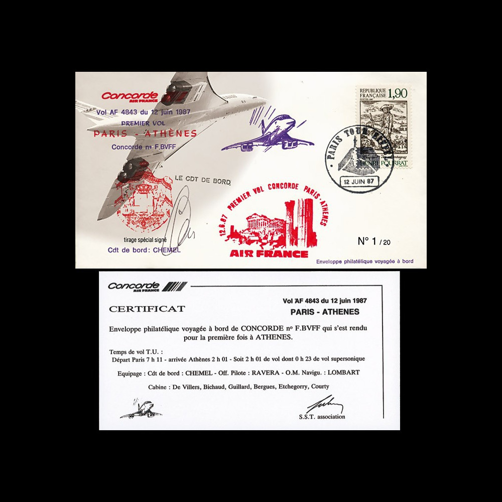 CO87-6ATHD1 : FFC carried on board Concorde F-BVFF «1st flight Concorde AF 4843 Paris (France) - Athens (Greece) 12.6.1987»