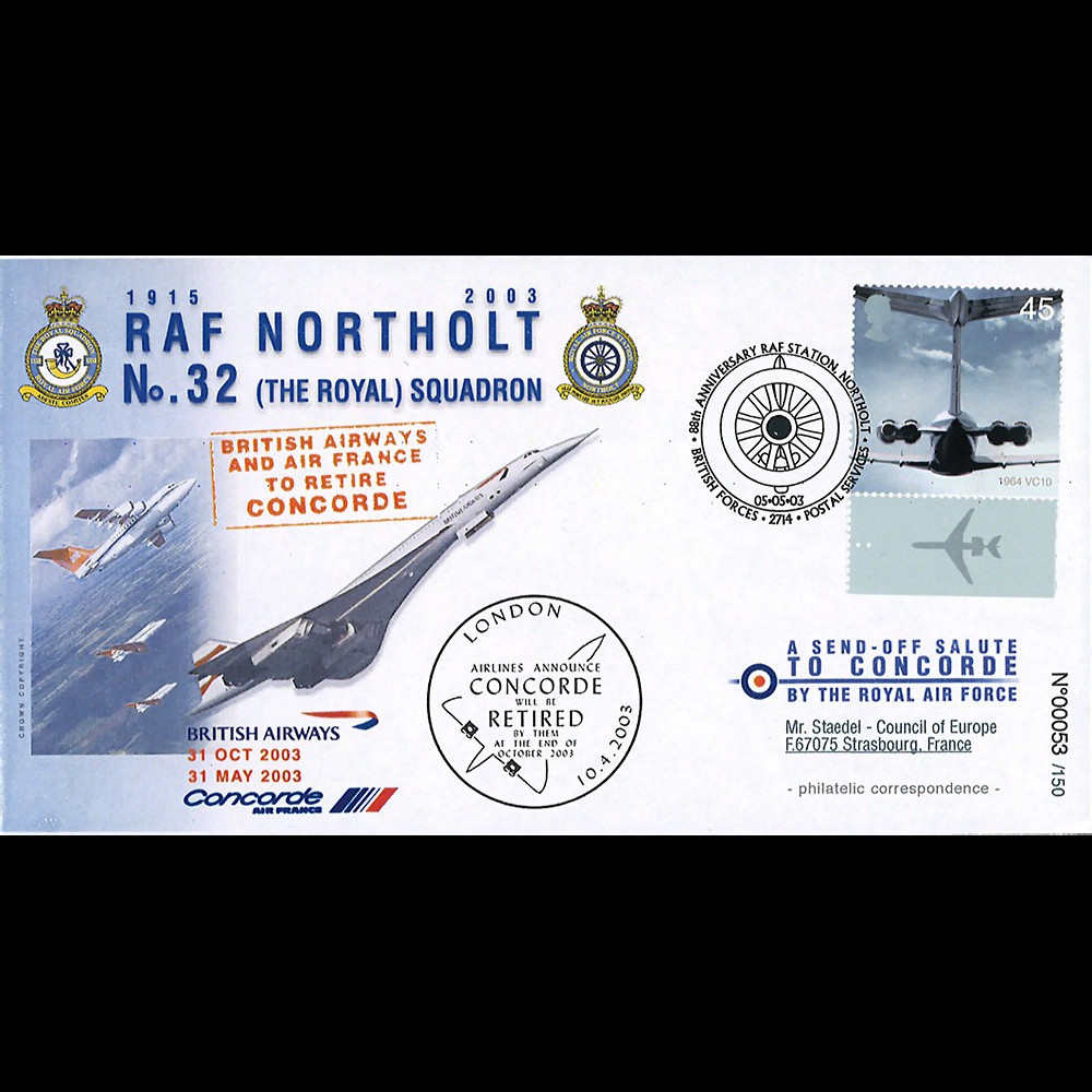 CO03-RAF3 : Special envelope United-Kingdom "88th anniversary of the British airbase RAF Station Northolt - Official statement : British Airways and Air France to retire Concorde"