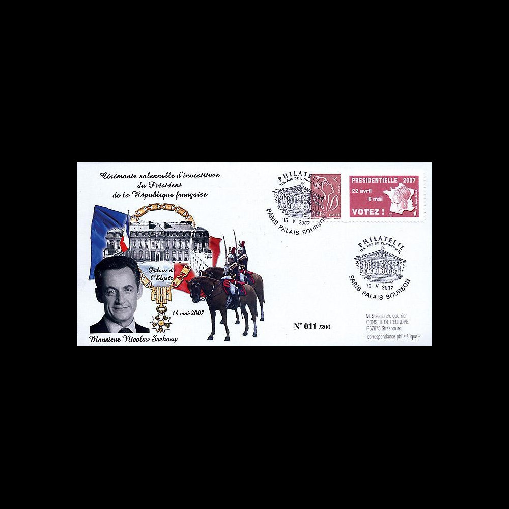N°EP07-3b : FDC FRANCE "2007 Presidential Election in France / May 16, 2007 : Official ceremony of the French Presidential Inauguration, Mr. Nicolas SARKOZY" (TYPE 3) :