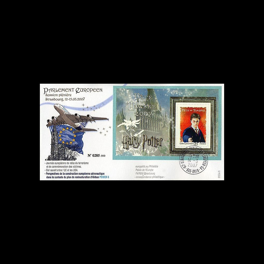 N°A380-41: FDC Session of the European Parliament - March 2007 - "European day of the refusal of the terrorism and of the commmoration of the victims." - "open sky between the European union and and USA." - "Perspectives of the European aero nautical constructionin the context of the restructuration plan of Airbus POWER 8".