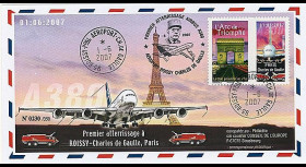 N°A380-33T1 : Airbus A380 - Mission 03 : Toulouse - Canton, Pekin and Shanghai (China) - Toulouse 21-24.11.2006. Special FDC 'Mission 03 - flights AIB 304 Shangai - Toulouse' landing Toulouse
