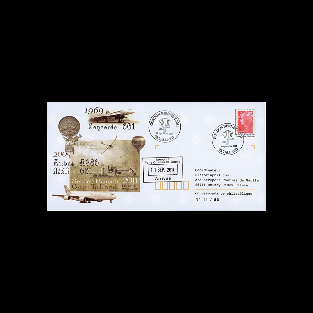 Postmarked in Tallard "Gordon Bennett" (France) dated September 10, 2011