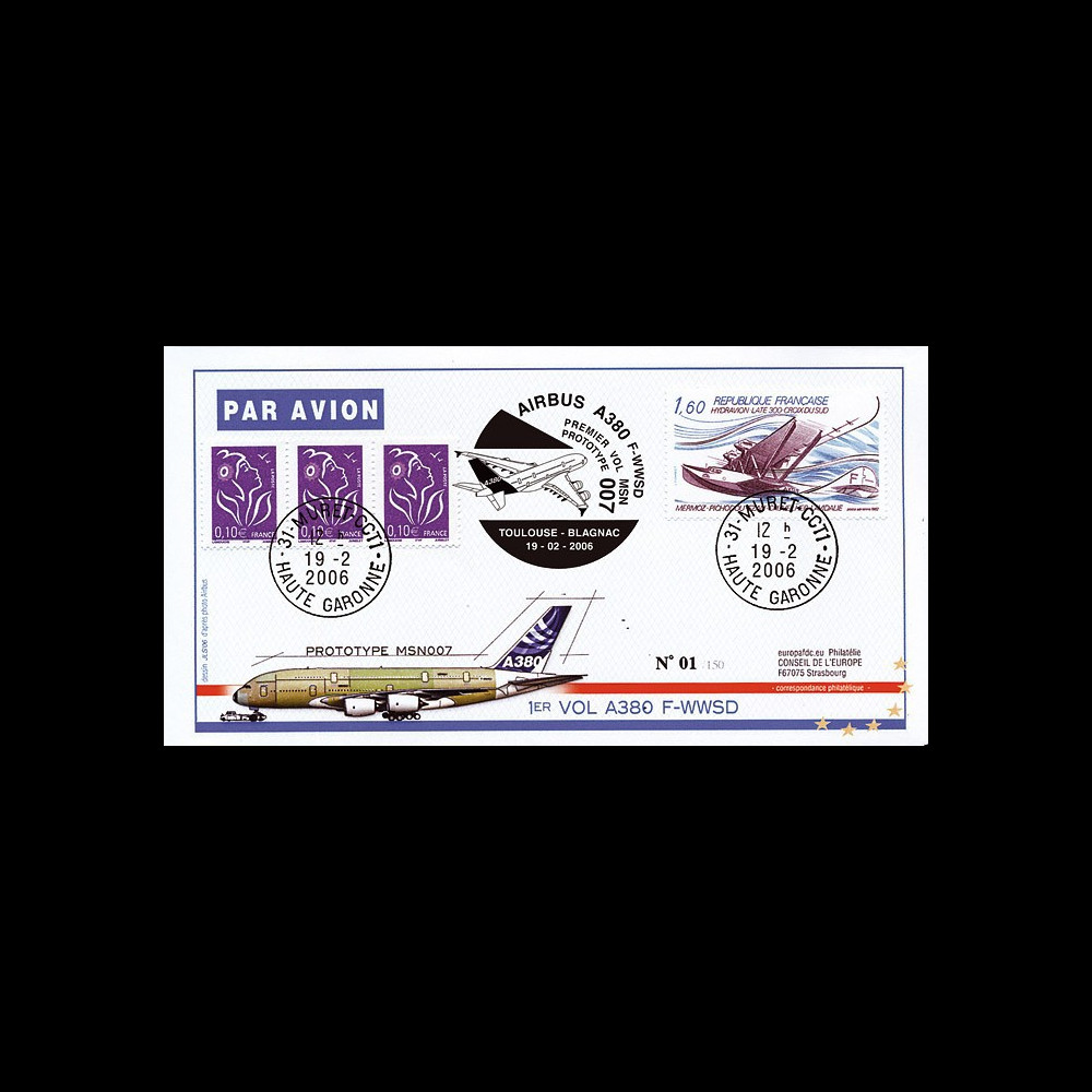+ Special cachet "Airbus A380 - 1st flight Prototype MSN 007" February 19, 2006