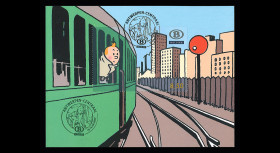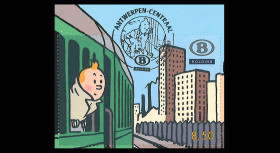 (recto) Postage Belgium SNCB Holding 8,50€ "Railway - Tintin in America" (from the block)