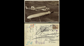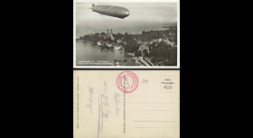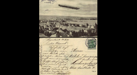 LZ127-089 : 1930 - Postcard "LZ127 Graf Zeppelin flying over the Castle of Friedrichshafen" Price €21.00