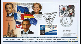 OTAN09-2T2 : 2009 - FDC "60th Summit NATO Strasbourg / SARKOZY - OBAMA - MERKEL"