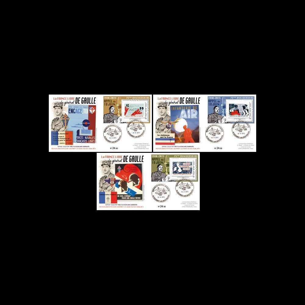 DG15-4/6 : France 3 FDC "Free France of General de Gaulle issued for the 75th anniversary of the Appeal of 18 June 1940