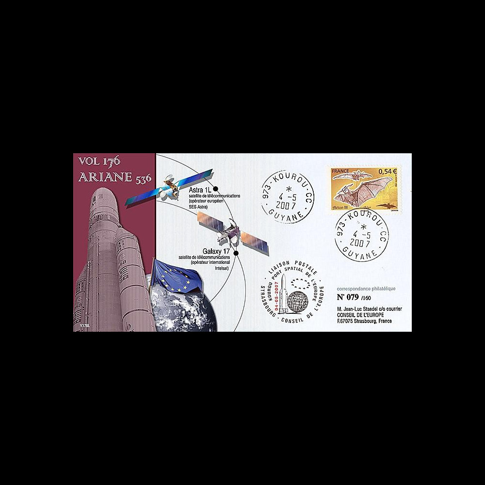 N°V176L-T1 : FDC «FLIGHT N°176 rocket ARIANE 5 - version 536 - sat. Astra 1L and Galaxy 17»