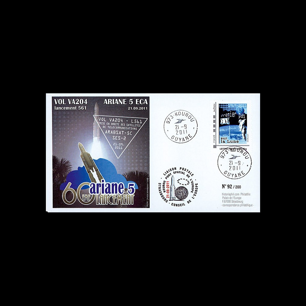 "September 21, 2011 : Launching ARIANE 5-ECA Rocket Version Nr. 561 - Flight N°204 - Arianespace to Launch ARABSAT-5C satellite and SES-2 satellite" (TYPE 1) 2011