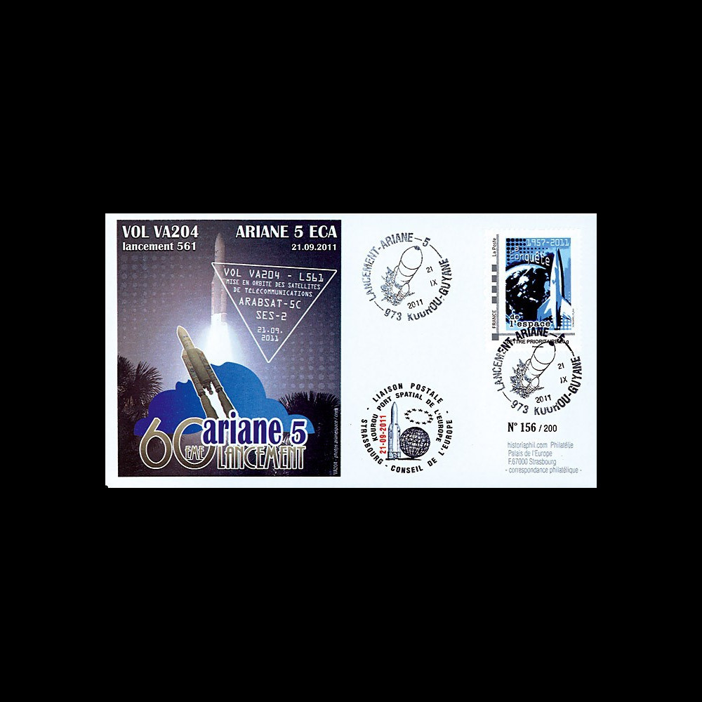 "September 21, 2011 : Launching ARIANE 5-ECA Rocket Version Nr. 561 - Flight N°204 - Arianespace to Launch ARABSAT-5C satellite and SES-2 satellite" (TYPE 2) 2011