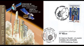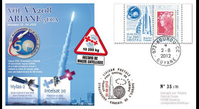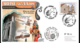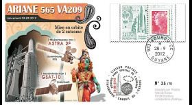 Franked France (TYPE 1) 1 value Marianne Permanent Validity Priority Letter 20g on special Stamp Display Unit «Launch 209 Ariane 28.09.2012 - GSAT-10 (India)»