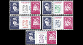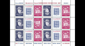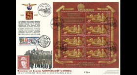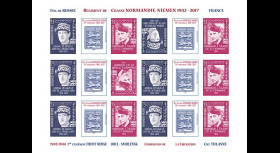 NIEM17-4FND : Sheetlet of 6 triptychs INVERTED PAGES "75 years of of the NORMANDIE-NIEMEN Hunting Regiment / 1943-44 - 1st Russian Front campaign, Orel - Smolensk / Liberation Company / Gal. de Gaulle and Cdt. Tulasne / regiment badge"
