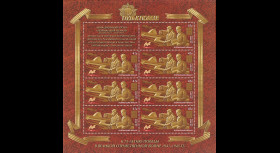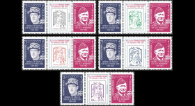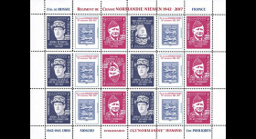 NIEM17-5FD : Sheetlet of 6 triptychs INVERTED PAGES "75 years of of the NORMANDIE-NIEMEN Hunting Regiment / 1944 - 2nd campaign Russian Front, Vitebsk, Berezina, Minsk, Niemen / Gal. de Gaulle and Cdt. Pouyade / regiment badge"