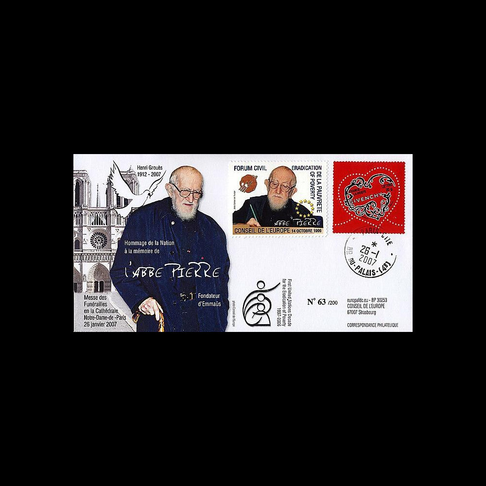 N°ABP2-type2 : Commemorative letter "Homage of the Nation in memory of Abbé Pierre, Henri Grouès 1912 - 2007, Founding Father of Emmaüs"