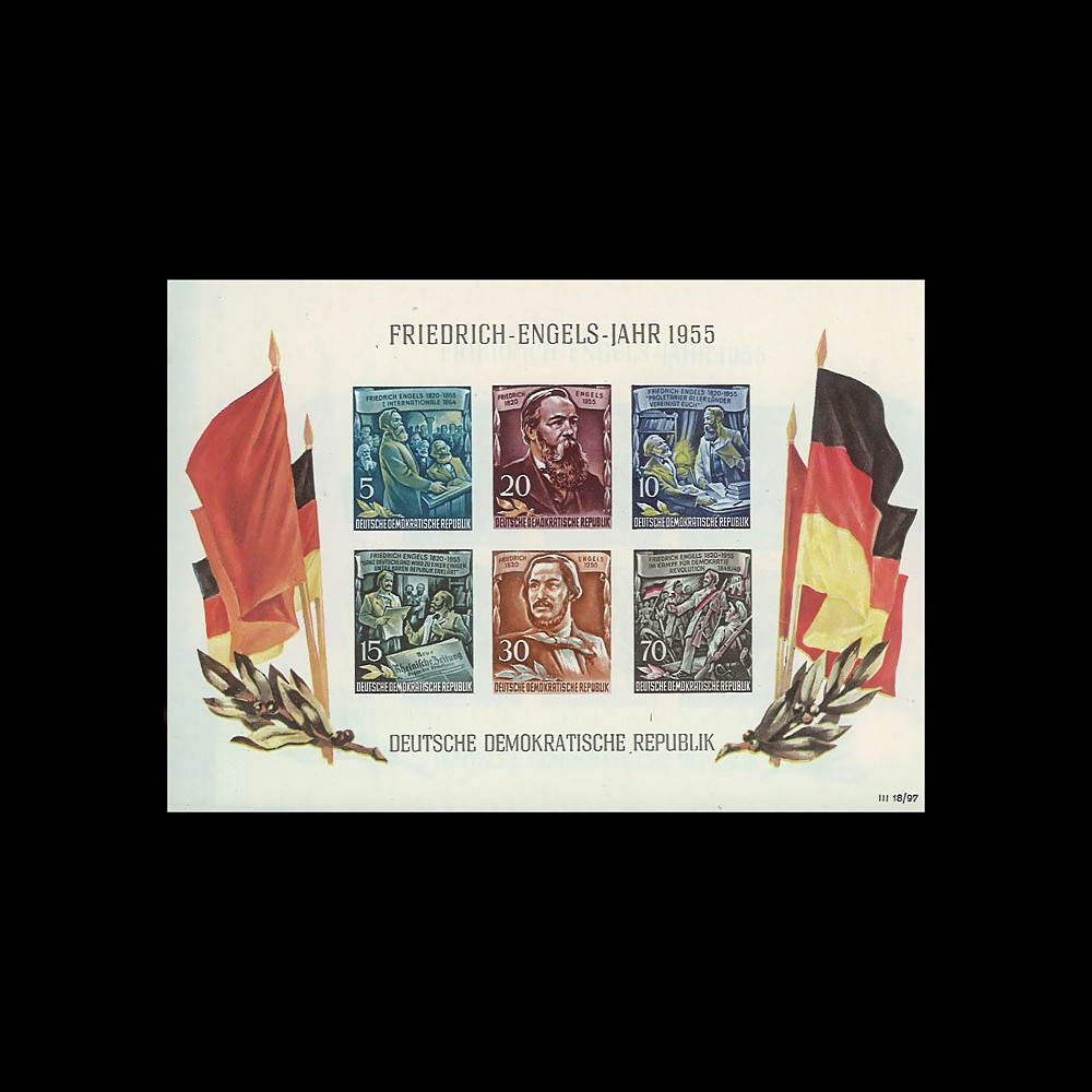 N°DDR7BF : Block-booklet non-perforated of 6 values DDR 1955 “135th anniversary of the birth and 60th anniversary of the death of the philosopher Friedrich Engels” in NEW**