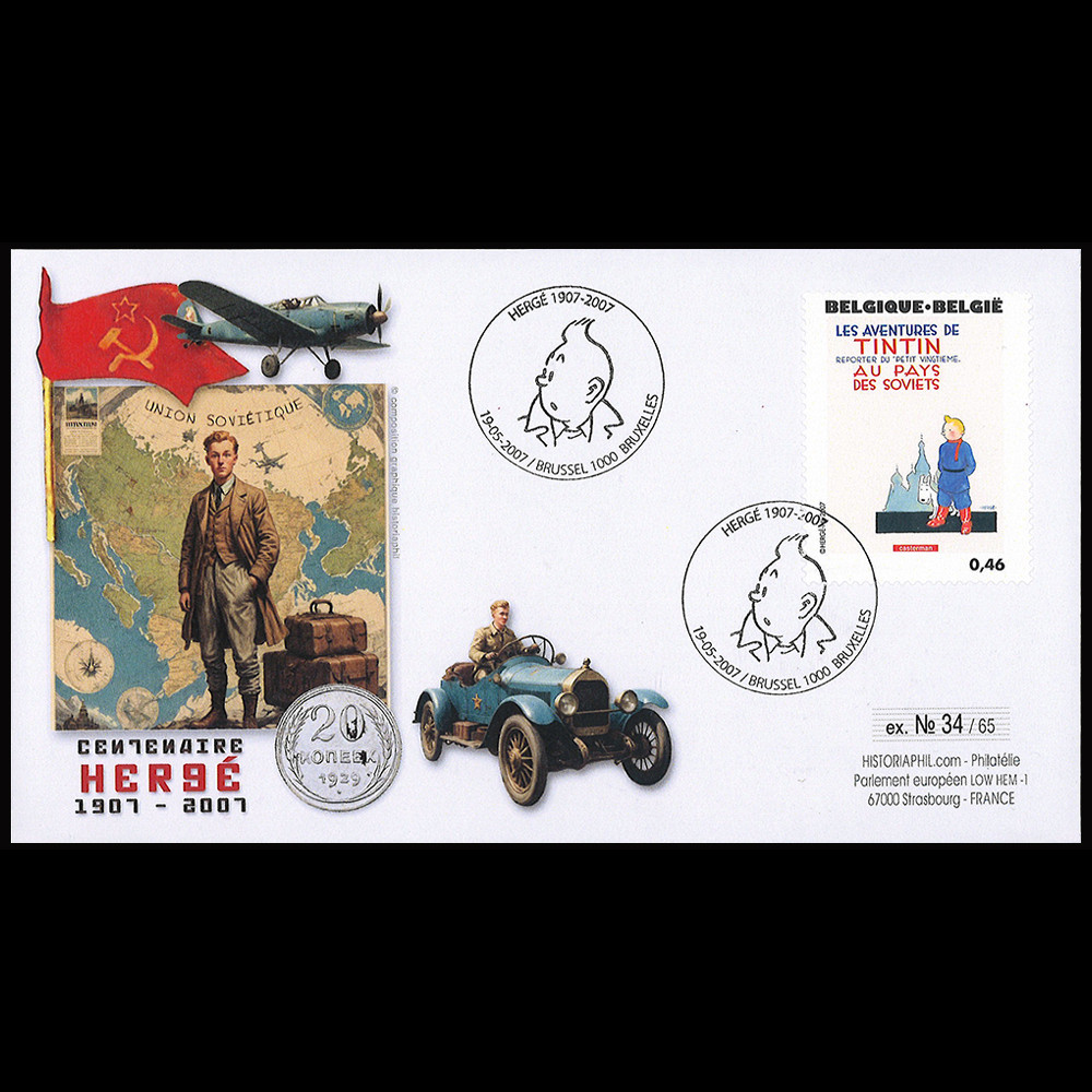 - Illustrated cancellation “Brussels Hergé 1907-2007 - Tintin 19.05.2007” (pre-order)