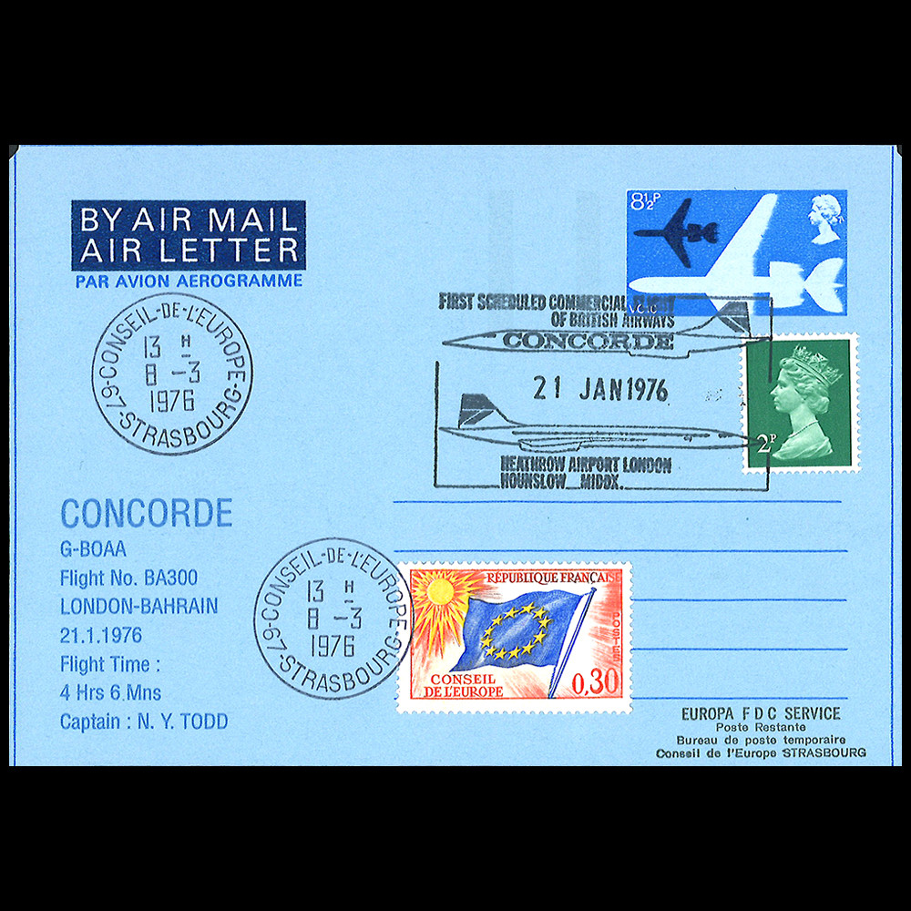 - Postmarked Heathrow Airport “1st Concorde commercial flight G-BOAA British Airways” 21.01.1976