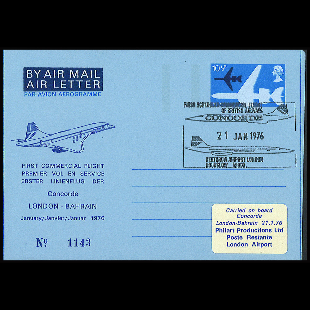 - Postmarked Heathrow Airport “1st Concorde commercial flight G-BOAA British Airways” 21.01.1976
