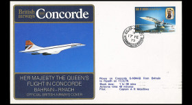 COBA79-2ROY1: Official BA cover carried on board “Royal Concorde British Airways Flight - Official Visit to the Emirates of HM Queen Elizabeth II, Bahrain - Riyadh, February 17, 1979”