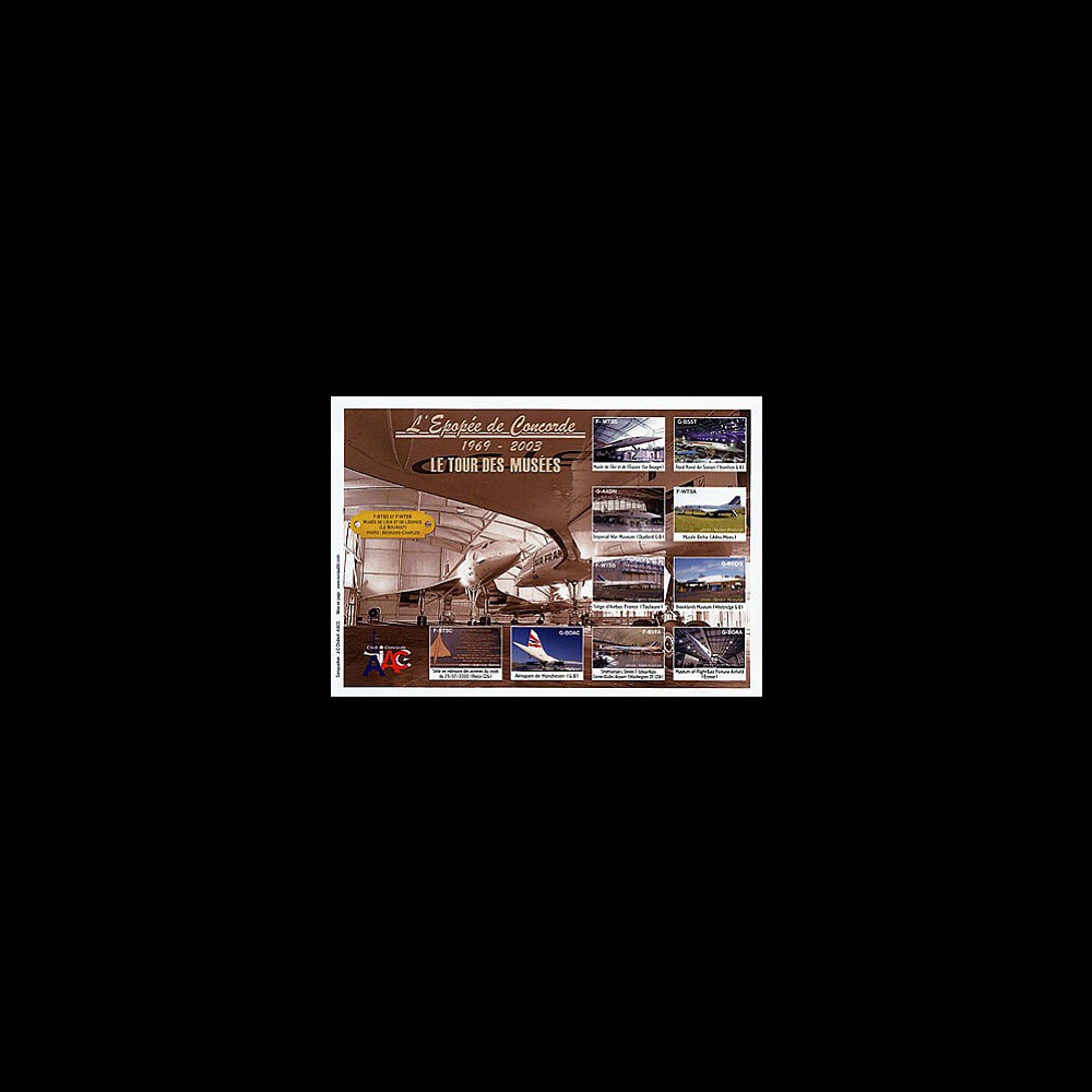Three years after the definitive cessation of Concorde flights, here are the 8th and 9th sheets of AIAC vignettes from the collection “The epic of Concorde 1969-2003”, true inventories of Concorde Museums around the World.