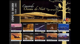 Superbly illustrated and printed on gummed paper, these sheetlets of labels (Ft. 21 x 14.4 cm) constitute an essential inventory of the legendary “Concorde”, the only civil supersonic transport aircraft, put into regular service in the history of the aviation. These sheets of aerial labels were produced thanks to the partnership of The Club Concorde AIACC and European Philatelic Editions (Historiaphil©). Graphic design: ©Mélissa Staedel 2003/2004, according to doc. AIACC.