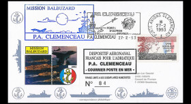 - "Aircraft Carrier CLEMENCEAU - Operation Balbuzard", ship's postmark "PA Clemenceau - Naval Action Force" 27.02.1993 - blue ship's postmark "Mission Balbuzard PA Clemenceau".