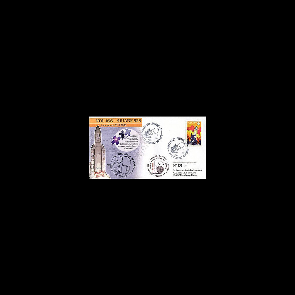 FDC «FLIGHT N°166 ARIANE - version 523 - launching achieved for thr rocket Ariane 5 GS with orbit the biggest satellite of telecommunications never built and launched THAICOM 4 (IPSTAR) for Thaïlande»