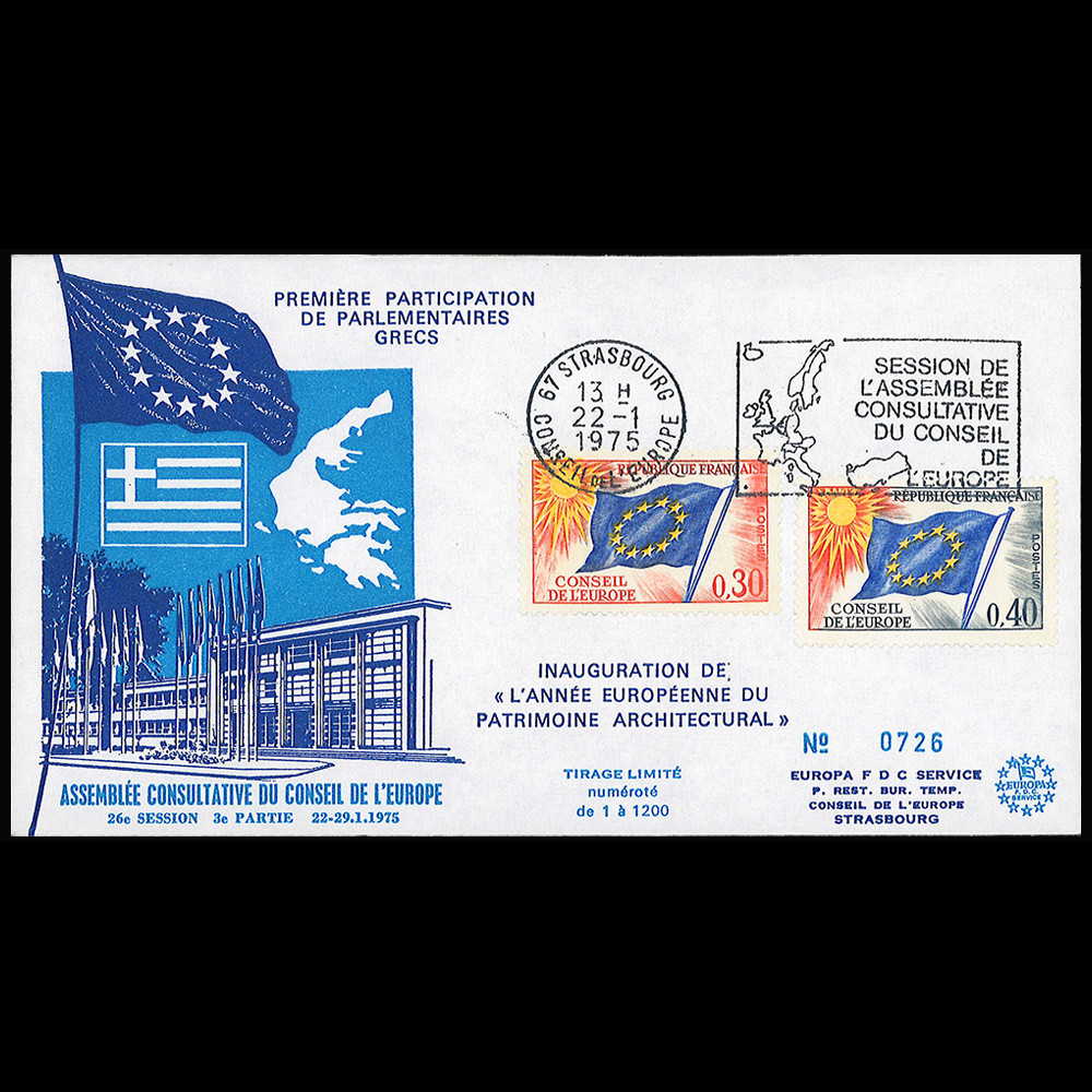 - Slogan cancellation “Strasbourg Session of the Consultative Assembly of the Council of Europe (WITHOUT MAP OF GREECE) January 22, 1975”