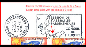- Slogan Cancellation “Strasbourg Session of the Parliamentary Assembly of the Council of Europe (WITH ADDITION OF THE MAP OF GREECE) April 21, 1975”