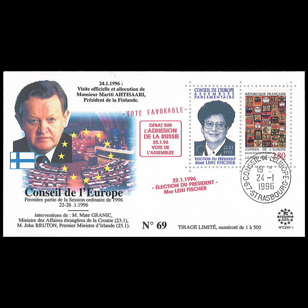 - 22.01.1996: Election of the President of the Parliamentary Assembly of the Council of Europe, Mrs. Leni FISHER