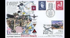 DEB14-27 : Maxi FDC FRANCE "June 6, 2014 : Special postmarked in Vierville-sur-Mer (France) - 70th anniversary of the Landing in Normandy (D-DAY) / June 6, 2014 : Special postmarked in Saint-Laurent-sur-Mer (France) - 70th anniversary of the Landing in Normandy (D-DAY) - 1st, 2nd and 29th U.S. Division / OMAHA BEACH / Saint-Laurent-sur-Mer (Calvados, France) June 1944 : GMC DUKW-353 'DUCK' Amphibious Truck Landing / Jeep Willys / General DE GAULLE / 1939-45 : World War 2 (WWII)" (Size : 13,5 x 20,8 cm) 2014 :