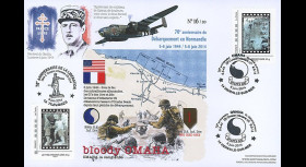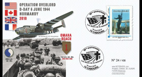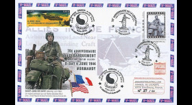 DEB14-26 : Maxi FDC FRANCE "June 6, 2014 : Special postmarked in Vierville-sur-Mer (France) - 70th anniversary of the Landing in Normandy (D-DAY) / June 6, 2014 : Special postmarked in Saint-Laurent-sur-Mer (France) - 70th anniversary of the Landing in Normandy (D-DAY) / OMAHA BEACH - Jeep Willys / General DE GAULLE / 1939-45 : World War 2 (WWII)" (Size : 13,5 x 20,8 cm) 2014 :