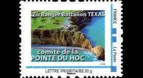Franked France 1 value Personalized Stamp Green Letter 20g "Saint-Laurent-sur-Mer : Monument The Braves - OMAHA BEACH, 2014" postmarked in Vierville-sur-Mer "70th anniversary of D-DAY - OMAHA / 29 Let's Go" (France) dated June 6, 2014
