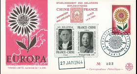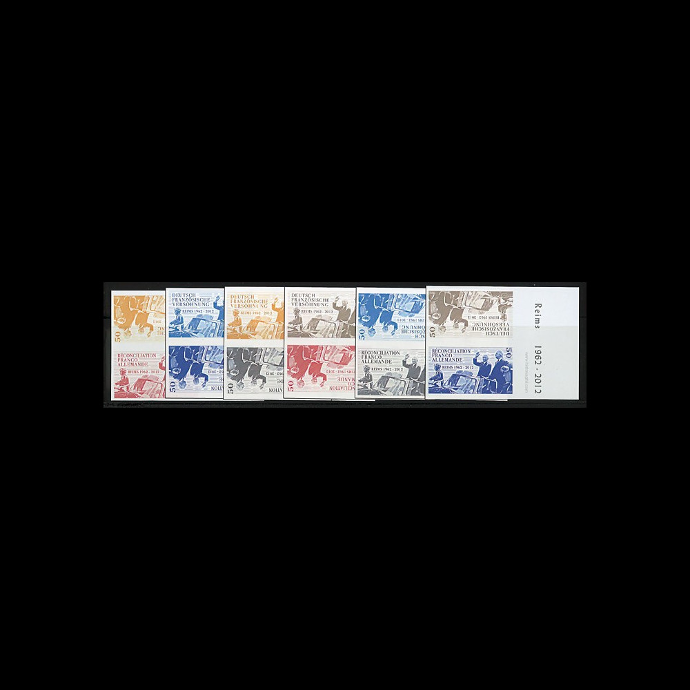 N°DG12-3P1/6ND : Set of 6 blocks of 2 labels "July 8, 2012 : 50th anniversary of the Franco-German reconciliation / Mr. Charles DE GAULLE, President of France and Mr. Konrad ADENAUER, Chancellor of the Federal Republic of Germany in the car Simca V8 Presidency"