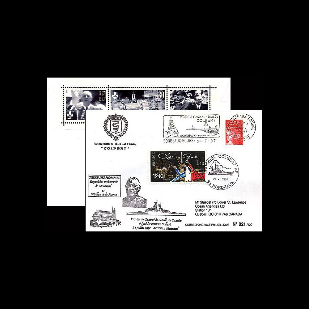 "30th anniversary of the official voyage of General DE GAULLE aboard the cruiser Colbert - Saint-Pierre-et-Miquelon, Canada, Long live free Quebec! 1967-1997"