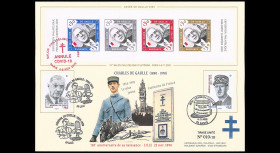 + cachet «visit of General de Gaulle, Road of the Roy, Quebec-Montreal 1967-2002»