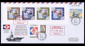 As a result, the early sale of the "2020 YEAR OF DE GAULLE" postage stamps and the "First Day of Issue" cancellations of the Salon Philatélique d'Automne in Paris, were exceptionally processed from the Imprimerie des Timbres-Poste in Boulazac. A private red handstamp "Salon Philatélique d'Automne - CANCELED (virus)" has only been affixed to our philatelic documents.